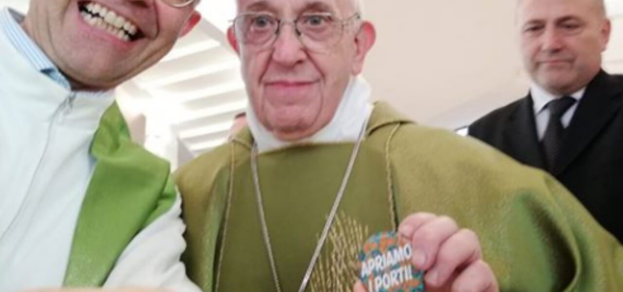 SELFIE PAPA FRANCESCO CON SPILLA “APRIAMO I PORTI”