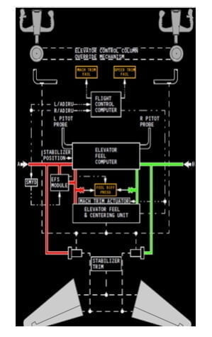 Iniziamo introducendo una prima immagine tratta dal manuale operativo del 737 MAX che ci mostra i sistemi di controllo dell’assetto di volo dell’aereo: