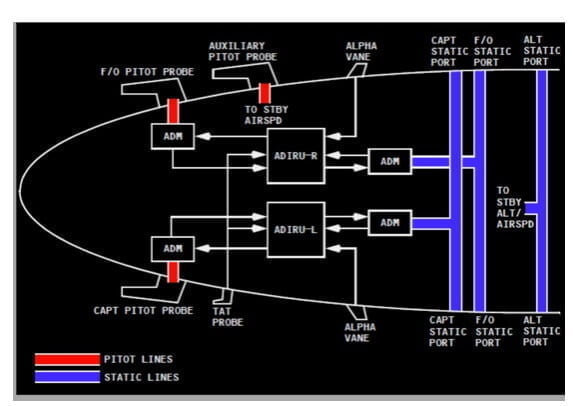 A proposito di sicurezza, argomento su cui Boeing non è seconda a nessuno, il diagramma ci descrive l’inserimento delle ultime porte statiche alternative e della sonda di Pitot ausiliare i cui dati confluiscono verso una terza unità di computer (Air Data) totalmente indipendente nel cockpit.