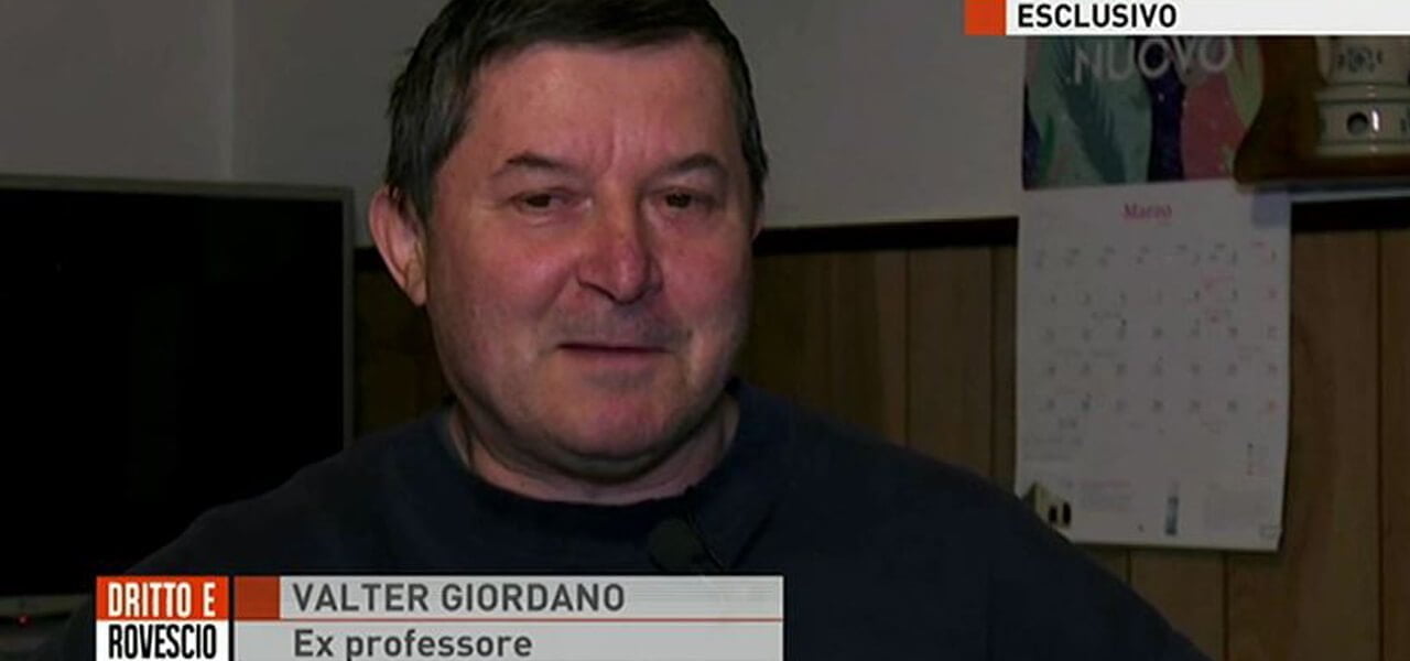 Proprio in questi giorni in cui si parla tanto del caso dell’insegnante di Prato rimasta incinta del suo giovanissimo allievo, all’epoca dei fatti appena 13enne, i riflettori si sono riaccesi su Valter Giordano, il professore di Saluzzo condannato per aver fatto sesso con le sue studentesse e tornato libero. Dopo aver patteggiato nel 2014 due anni di pena per aver avuto una relazione con due ragazze 17enni, la trasmissione Dritto e Rovescio in onda su Rete 4 lo ha intervistato in esclusiva. Ai microfoni del programma l’uomo ha commentato la sua attuale posizione spiegando anche cosa avvenne realmente. “Ho sbagliato, l’ho ammesso, ho pagato, e se devo essere sincero anche esageratamente perchè a un certo punto pareva che il paese avesse un unico mostro ed ero io”, ha esordito. Giordano fu accusato di aver abusato del suo ruolo di insegnante nei confronti di due alunne minorenni con le quali ebbe una relazione. Le telecamere del nuovo programma di Paolo Del Debbio lo hanno incontrato nella sua abitazione di famiglia, in provincia di Cuneo, dove vive in solitudine.