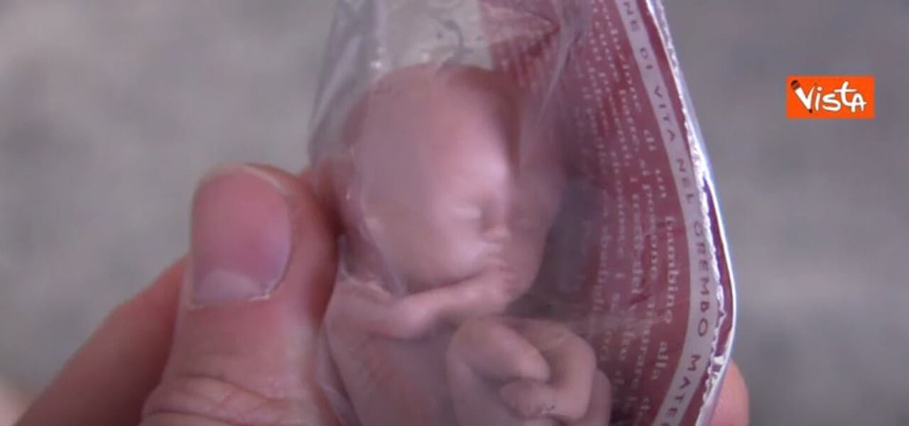 Un piccolo feto di plastica, confezionato in una bustina trasparente e riportante la scritta “L’aborto ferma un cuore che batte”. E’ questo uno dei gadget distribuiti questa mattina in occasione del Congresso mondiale delle famiglie che si sta svolgendo a Verona e donato da uno degli sponsor, Notizie ProVita. Un’idea che ovviamente, come era probabilmente negli intenti, ha chiaramente sollevato delle polemiche alle quali però Gianfranco Amato, presidente dell’associazione Giuristi per la Vita ha voluto replicare ai microfoni di Fanpage.it: “Penso che chi ha realizzato questa cosa abbia voluto lanciare un messaggio: guardate che l’aborto non riguarda come spesso si dice un grumo di cellule, pochissime cellule, ma riguarda una cosa che è un po’ più che un grumo di cellule”. Nel guardare il gadget di plastica che rappresenta un embrione di dieci settimane ha aggiunto: “Io qui vedo un essere umano formato: mani, piedi. E’ evidente quindi che al di là del gusto il messaggio di chi ha voluto esprimere così un’idea è quello: ‘Guardate che non stiamo parlando di un grumo di cellule ma di un essere umano”.