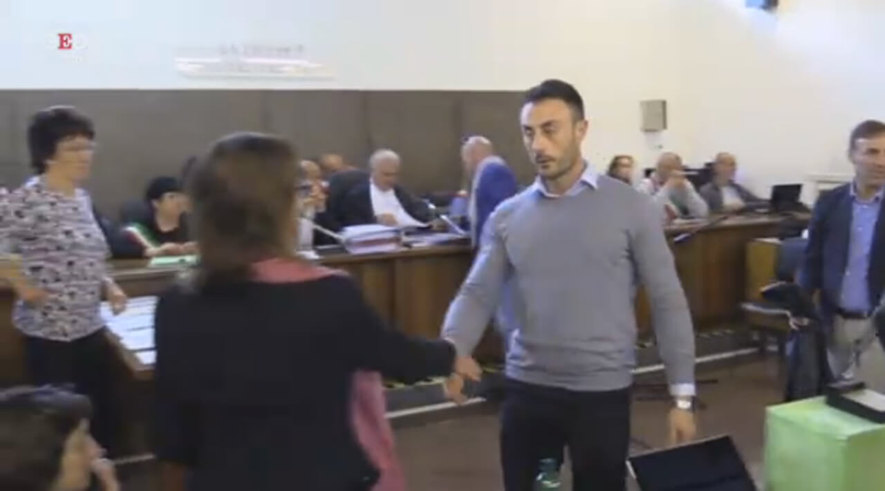 Processo Cucchi: il carabiniere Francesco Tedesco stringe la mano in aula a Ilaria al termine del processo