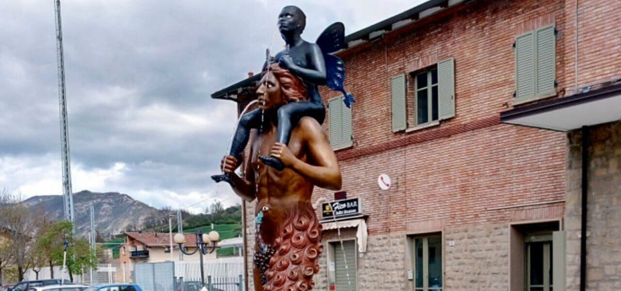 Suscita polemiche la fontana dell'artista Luigi Ontani installata davanti alla stazione di Vergato