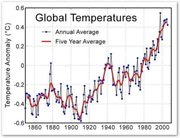 A mettere in fila questa collezione di idiozie che la gente ha assorbito per un quarantennio come allarmi credibili di autorevoli accademici è stato il blogger e ricercatore Peter Baggins, in uno special che ha voluto dedicare all’Earth Day appena celebrato. Tutto verificabile, tutto riscontrabile. Ora, guardate questo grafico, il quale ci mostra come le temperature a livello globale siano salite di circa 0,4 gradi centigradi negli ultimi cento anni. Cento anni! Sapete qual è il range di crescita previsto da qui al 2100 dall’Intergovernmental Panel on Climate, il forum scientifico dell’Onu creato nel 1988 per contrastare i cambiamenti climatici? Varia da un minimo di 1,4 gradi centigradi in più fino a un massimo da 5,8 gradi, il tutto nell’arco di 81 anni. Nei 100 anni precedenti, nonostante le idiozie partorite dagli scienziati poc’anzi citati, le temperature sono salite di 0,4 gradi.