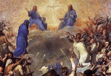 Per meglio chiarirlo, torniamo a sfruttare il linguaggio illuminante delle immagini. Pensiamo a un altro celebre ritratto, questo volta non di un individuo isolato ma di gruppo, che ci mette a più diretto contatto con le stanze del potere in cui si forgiavano i destini degli uomini della prima età moderna. Il protagonista centrale questa volta è Carlo V d’Asburgo, re di Spagna e imperatore del Sacro Romano Impero, l’energico dominatore della scena politica europea della prima metà del Cinquecento. In un grande dipinto di Tiziano, oggi conservato al Prado, il sovrano della Monarquía universal di fede cattolica è rappresentato con a fianco i suoi più stretti famigliari: la defunta moglie Isabella di Portogallo; il figlio Filippo II, destinato a succedergli sul trono iberico; la sorella Maria, regina d’Ungheria; l’infanta Giovanna. Ma nessuno di loro indossa le insegne del potere regale. Portano la lunga veste bianca di penitenza. Sono scalzi, le mani giunte nel segno della preghiera. La corona è deposta ai piedi dell’eccelso sovrano. Tutti sono rappresentati in adorazione della Trinità, che li sovrasta nella cornice di un cielo paradisiaco. Un nugolo di angeli attornia la famiglia imperiale e la sollecita al gesto della prosternazione devota, punta avanzata di una folla di beati e di patriarchi dell’Antico Testamento che si lanciano, le mani levate verso l’alto, nel desiderio di toccare il manifestarsi del mistero divino, da cui si irradia lo splendore luminoso della sua Gloria, eterna e invincibile. In un angolo, si riconosce una immagine che è stata identificata con il volto dello stesso Tiziano, a fianco di quello attribuibile a uno dei letterati di punta dell’Italia del Cinquecento: Pietro Aretino.