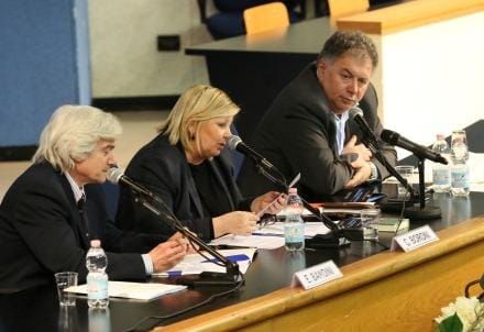 Giovannino Guareschi oltre i film, oltre la critica, oltre l’immaginario comune: Guareschi l’uomo libero. E’ questo il profilo dell’autore delineato da Giorgio Vittadini e da Egidio Bandini, rispettivamente, presidente della Fondazione per la Sussidiarietà il primo, giornalista e condirettore del nuovo quindicinale Candido, storico foglio satirico fondato da Guareschi, il secondo. Erano tutti occupati i 600 posti dell’auditorium Balestrieri di Brescia, giovedì 9 aprile, in occasione della serata di apertura del Mese letterario, organizzata come da tradizione dalla Fondazione San Benedetto e introdotta dal presidente del Ctb Carla Boroni.