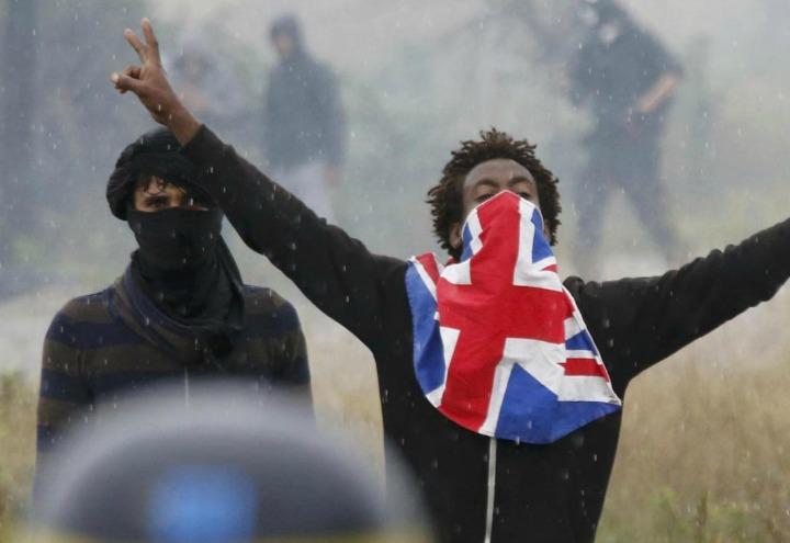 Migranti in rivolta nella "giungla" di Calais, 2016 (LaPresse)
