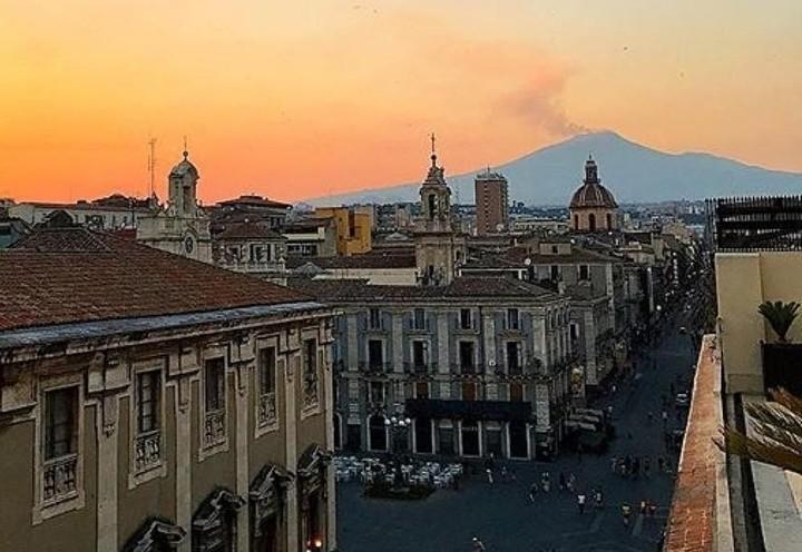 Anni prima, in un’alba di metà agosto, dal centro perfetto dell’isola vidi l’Etna, la grande montagna, apparire nitida all’orizzonte, come per segnare la strada al viaggiatore, indicare un luogo certo a cui fare ritorno. E ora che vago per le strade di una Catania semideserta, con i chioschi di seltz, limone e sale chiusi e un vento che s’infila tra le vie poco illuminate ne avverto la silenziosa presenza nelle strade, sui marciapiedi, nei gradini e nelle facciate scure di pietra lavica. Nell’energia febbrile — ma sempre distesa — di coloro che la abitano.