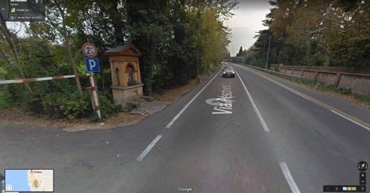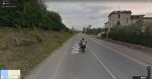 Questa la foto da Google maps della strada in direzione Peschiera con visibile l’edicola poco fuori Cisano. Manca però un elemento essenziale cioè la scarpata su cui Bisagno sarebbe caduto per poi scivolare sotto il rimorchio.