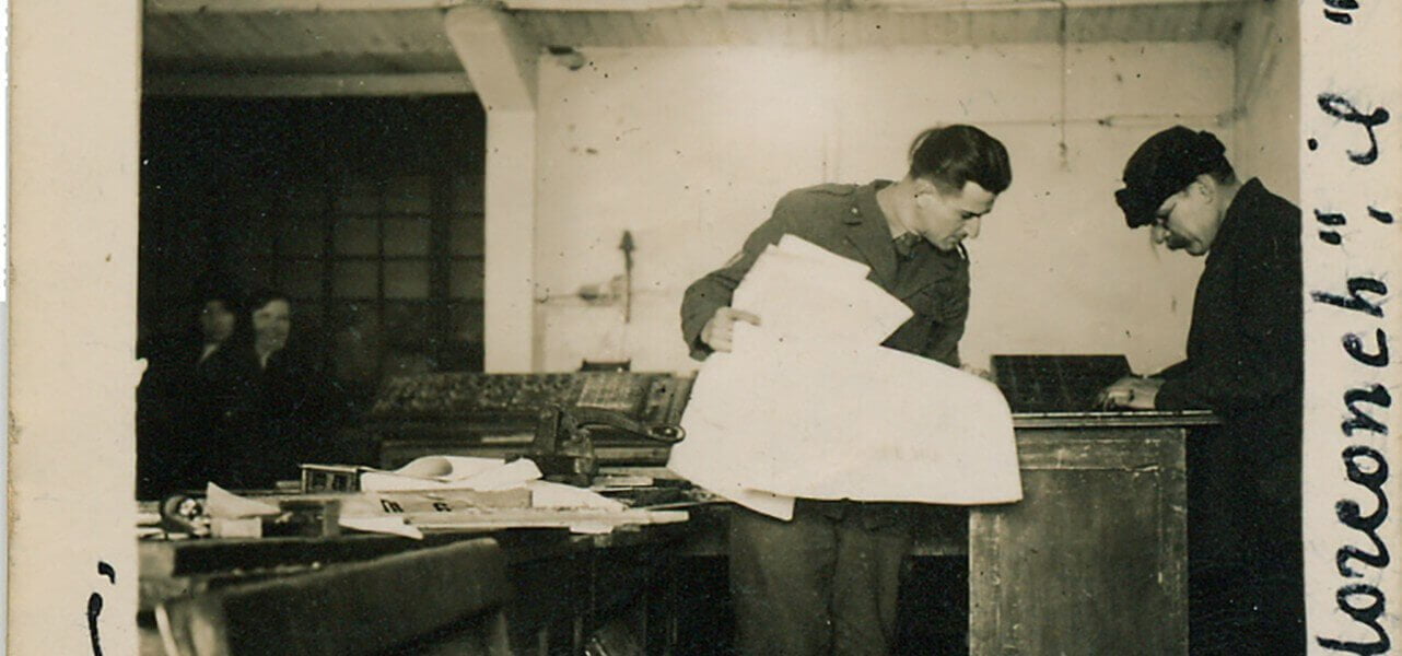 Rientrato a Milano, Guareschi raccoglie l’intera annata di Dovunque, segnando con il lapis rosso sulle pagine gli articoli scritti dal fratello e conservando le due fotografie che lo ritraggono, regolarmente vistate dalla censura, intento a leggere il giornale o a discutere col “proto” dell’impaginazione. A guardarle oggi, pensando all’Armir, alla campagna di Russia, al dramma delle “centomila gavette di ghiaccio” e a quei soldati che non volevano perdere il filo sottile che li legava alla patria, viene davvero tanta malinconia: “O Sagra di Santa Gorizia, o Vittorio Locchi …Com’è confortante ricordare quegli antichi versi vestiti di favola e di grigioverde”.