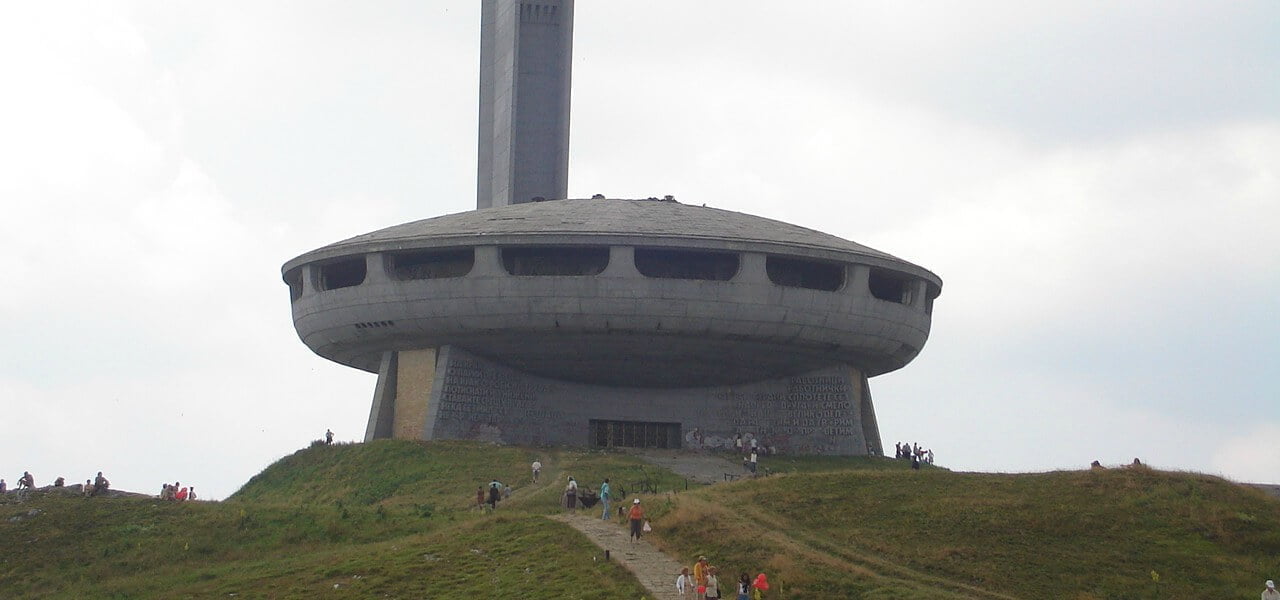 Nel cuore della Bulgaria, sul culmine di una montagna a 1500 metri di altezza sorge un edificio che ha qualcosa di lunare. Sembra una sorta di enorme disco volante planato sulla terra; un malinconico ammasso di cemento armato che non si capisce cosa ci stia a fare lì, isolato dal mondo. Eppure quella struttura stravagante era stato frutto di un disegno preciso: un centro congressi costruito nel luogo dove nel 1891 Dimitar Blagoev aveva fondato il Partito socialdemocratico bulgaro, da cui sarebbe poi nato il Partito comunista.