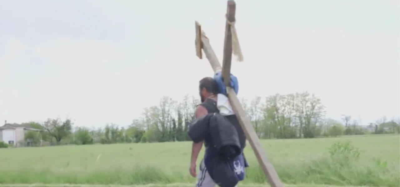 La storia di Gennaro, che sta andando da Milano a Roma a piedi con una croce da 40 kg in spalla per espiare le sue colpe.