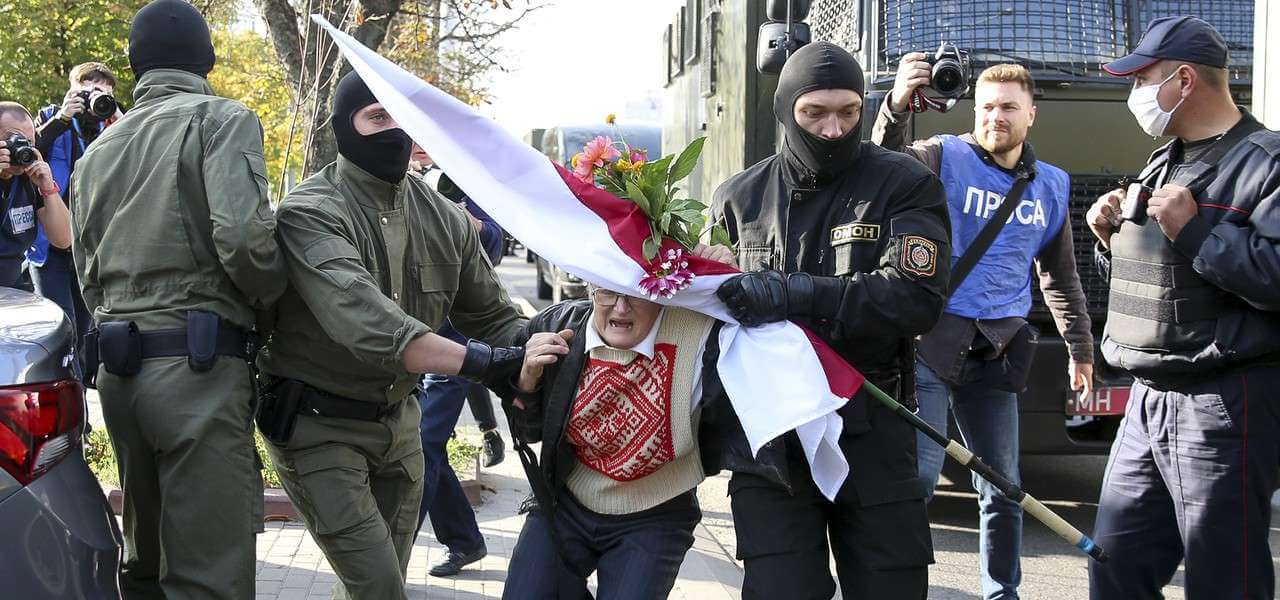 Nina Bahinskaya è una signora di 73 anni, diventata il nuovo simbolo delle proteste in Bielorussia. Ci sono alcune sue foto sulla Rete che sono esemplificative della forza di una persona anziana davanti alla brutalità della polizia: Nina, con una bandiera bielorussa in mano, circondata da giganteschi poliziotti con il volto coperto da passamontagna, come se avessero a che fare con il peggiore dei terroristi. “Nina Bahinskaya è stata rilasciata immediatamente senza neanche portarla in carcere” racconta il nostro contatto in Bielorussia, che avevamo già intervistato, oggi tornata in Italia dal marito dove, ci dice, “mi sento molto più tranquilla”, ma chiede ancora di mantenere l’anonimato. “È una attivista sin dal 1998, dice di aver pagato nel corso degli anni più di 16mila dollari di multe in seguito agli arresti ma non vuole che nessuno la aiuti economicamente, dice che è la sua scelta di vita e la sua croce che deve portare lei da sola per il bene del suo popolo”. Ancora una volta, come ai tempi di Solidarnosc in Polonia, dai paesi dell’Europa orientale ci viene una grande lezione di popolo, di solidarietà, di umanità che non teme la repressione: “La gente ha tradotto in russo il vecchio canto di Solidarnosc Le Mura e lo canta durante le manifestazioni” confida la nostra amica bielorussa.