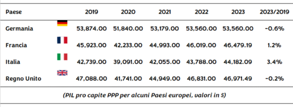 In realtà, i sensi di inferiorità emergenti degli economisti tedeschi potrebbero essere eccessivi, per due ordini di motivi. In primo luogo, in un periodo costellato di crisi come gli anni ’20 del XXI secolo, il confronto più sensato potrebbe essere quello con i dati pre-crisi. Da questo punto di vista, la differenza di performance tra Germania e Francia è piuttosto contenuta, come si evince dalla tabella seguente (fonte: tradingeconomics.com).