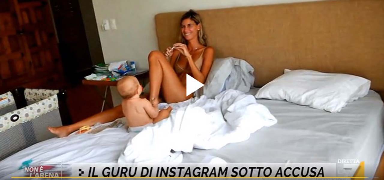 La moglie di Mirko Scarcella, il “guru” di Instagram al centro delle polemiche, è stata indirettamente protagonista nella puntata di ieri di Non è l’Arena, su La7, durante la quale il marito si è difeso ancora dalle accuse, rispondendo tra gli altri a Gianluca Vacchi. Proprio sul finire di trasmissione, durante la quale gli animi dell’ospite in collegamento e del padrone di casa si sono accesi non poco, la moglie di Scarcella ha in qualche modo smorzato la tensione. Dopo la telefonata di Simone D’Auria, artista ed ex cliente di Scarcella, il quale ha accusato anche lui di truffa il guru di Instagram, lo stesso Scarcella si è mostrato sorpreso asserendo: “Mamma mia, mia moglie è qua di fianco a me… è una roba… non ci posso credere!”. Il padrone di casa ha allora spronato l’ospite a inquadrare la moglie: “Ci faccia salutare sua moglie, dai, se si può!”. A quel punto Mirko ha inquadrato la bellissima compagna, sul letto in intimo, insieme alla loro bambina, lasciando in imbarazzo Giletti e scatenando qualche sorriso in studio ma anche qualche fraintendimento di troppo: “Sinceramente vista l’ora, a me la visione… per carità… sono lontano dal monitor, ma ho compreso di aver visto quello che non volevo vedere?”, si è domandato il conduttore, credendo di aver visto la donna nuda.