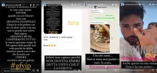 Cos’è successo realmente tra Davide Donadei e Arianna Gianfelici? Tra i due c’è stato davvero un flirt? A rispondere a tali domande è la blogger ed esperta di gossip Deianira Marzano che, su Instagram, scrive: “Davide, quando era con Chiara, è stato con Arianna Gianfelici. Chiara lo sa, ha parlato con lei e lo disse anche a me, ma non so perché non voleva farlo sapere. Arianna mi ha confermato tutto. La cosa la sapevamo già tempo fa ed è giusto dirlo  perché non vedo perché lui debba omettere queste cose e dire che la storia con Chiara era finita solo per gelosia”.