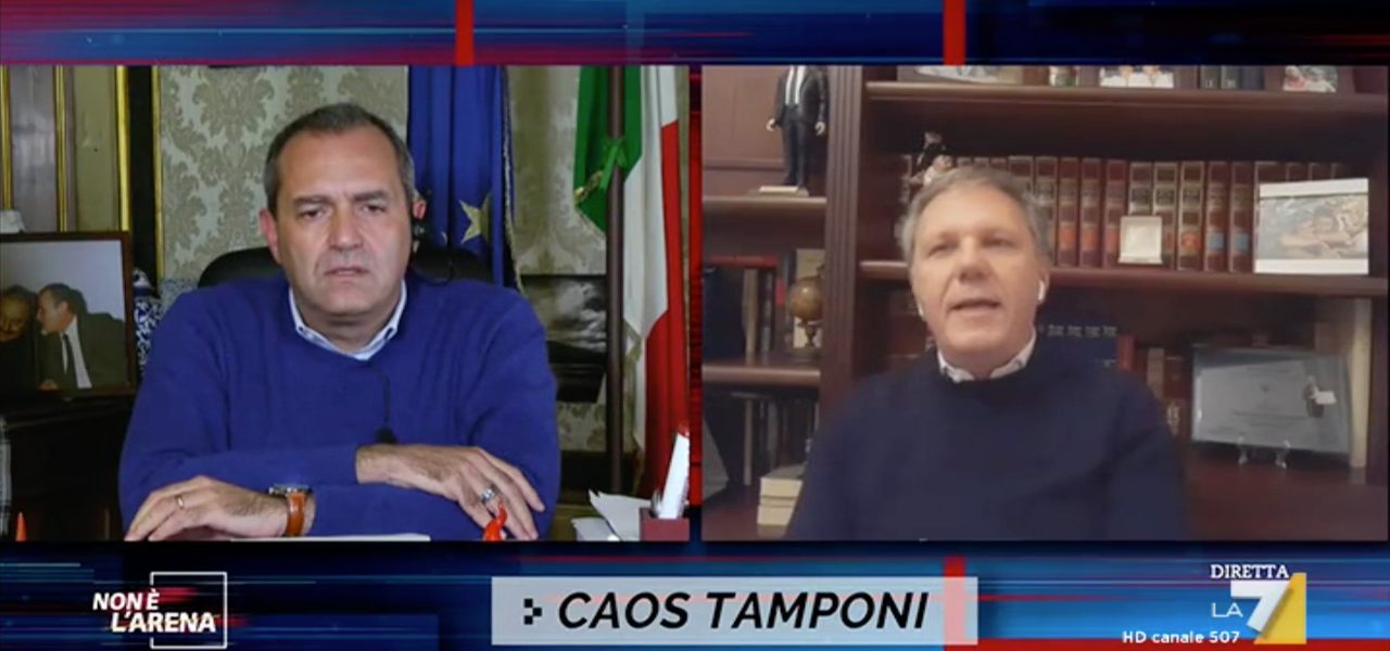 Duro scontro a “Non è l’Arena” di Massimo Giletti tra Luigi de Magistris, sindaco di Napoli, e il dottor Antonio D’Amore, direttore dell’Asl Napoli 2. La lite si è consumata sul caos tamponi. “La situazione è fuori controllo e ce la prendiamo con i giovani e i commercianti. Io comprendo il direttore e ho molto rispetto per le Asl, ma lo tsunami è arrivato a febbraio. Chi aveva la responsabilità di rafforzare la sanità pubblica, cioè le Regioni, in questi mesi qualche medico in più, qualche infermiere in più, qualche tampone in più e qualche tracciamento in più poteva farlo”, ha dichiarato il sindaco partenopeo. “A Napoli non ce n’è uno che va a casa, e se ne nessuno va a casa, la gente va in ospedale. E se le ambulanze vengono occupate, poi non ci sono per gli altri”. La replica del dottor D’Amore su La7 è durissima: “Quel che dice è falso e glielo dimostro con i numeri”. Ma Luigi de Magistris non ci sta: “Falso non me lo dice, porti rispetto per chi sta ogni giorno in prima linea. Ma lei vuole dire che a Napoli ci sono i medici che vanno a casa?”.
