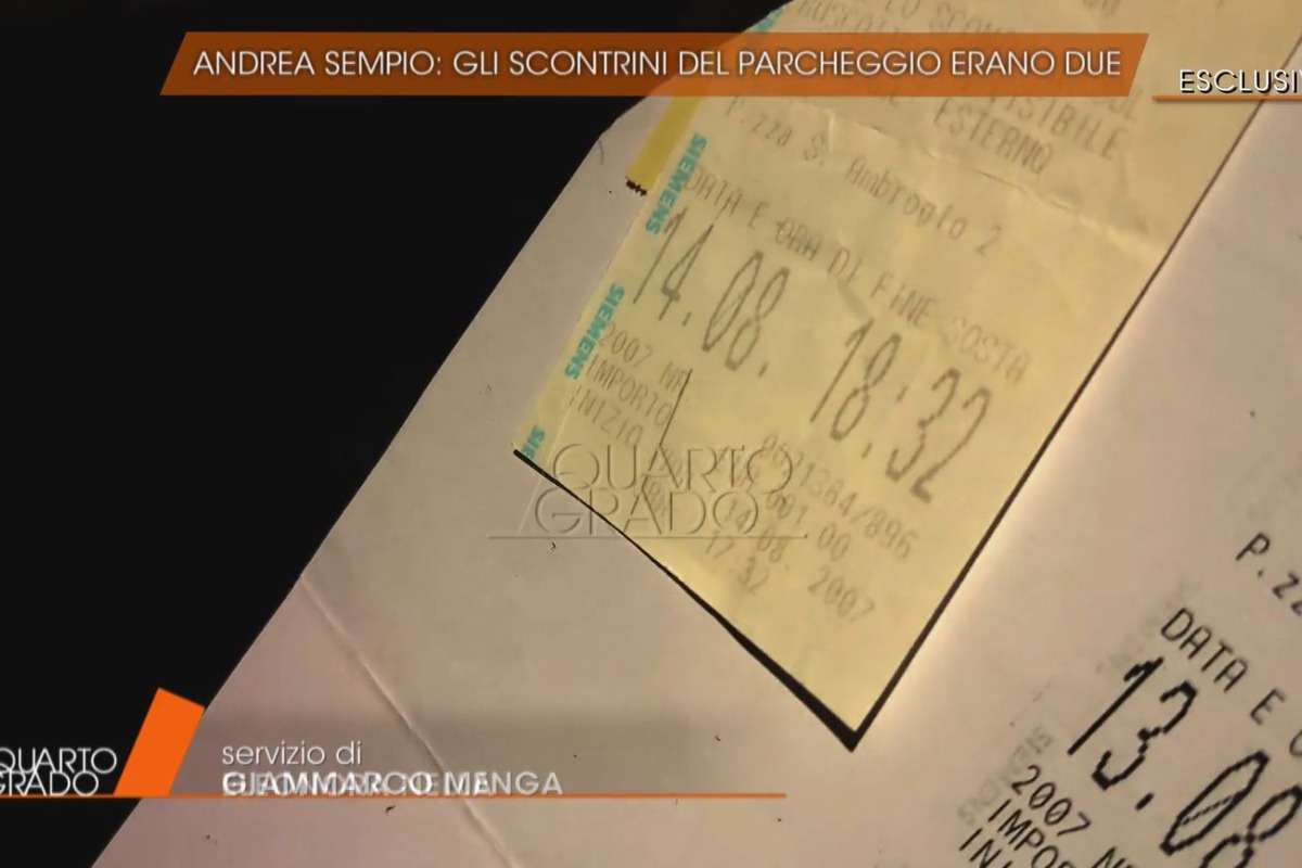 Ampio spazio ieri sul caso di Garlasco a Quarto Grado, a cominciare da un servizio in cui si evidenzia l’esistenza di un doppio scontrino. La famiglia di Andrea Sempio, oltre ad aver mantenuto il famoso ticket del parcheggio del 13 agosto 2007, ne aveva anche uno del giorno successivo, del 14 agosto, con orario 17:32, e prodotto nello stesso luogo del precedente, in piazza Sant’Ambrogio a Vigevano.