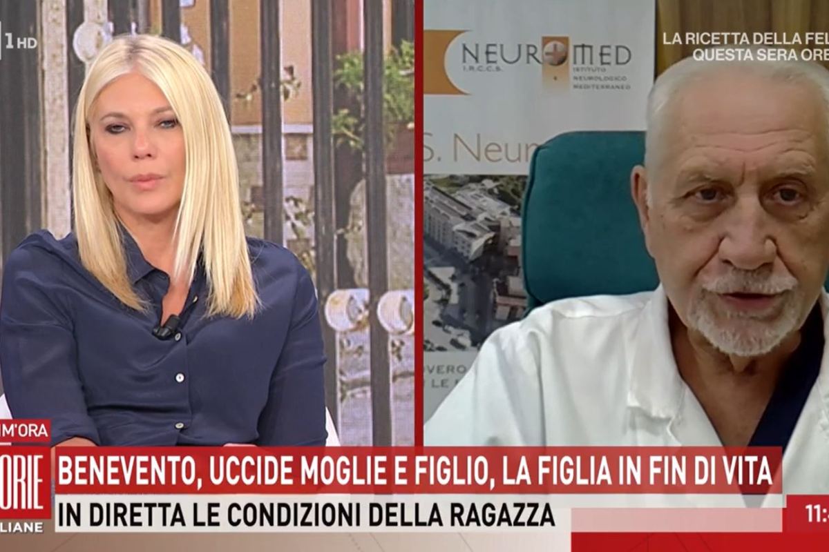 Il duplice omicidio di Paupisi commesso da Salvatore Ocone, colpevole reo confesso di aver ammazzato la moglie Elisa e il figlio di 15 anni, a Storie Italiane. Il programma di Rai Uno ha intervistato il dottor Aloj, direttore della terapia intensiva dell’ospedale di Pozzuoli, dove è ricoverata da due giorni la figlia 16enne aggredita brutalmente da Salvatore Ocone. “La speranza è quella che si possa salvare – le parole del camice bianco – ma diciamo che per fortuna è stata una notte tranquilla, la tac effettuata oggi ci dice che non sono aumentate le emorragie cerebrali presenti dovute al trauma, è ancora presente l’edema cerebrale, il rigonfiamento del cervello dopo il trauma, quindi dobbiamo essere speranzosi che nei prossimi 4/5 giorni la situazione resti così come è, stazionaria”.