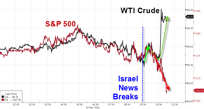 Tutte coincidenze, ovviamente. Ma restiamo alla questione mediorientale, quest’oggi. Mercoledì, quando il corpo del capo militare di Hamas, Ahmed al-Jaabari, non era stato nemmeno ricomposto per la sepoltura, sui principali siti e blog finanziari americani comparivano i due grafici riportati a fondo pagina.
