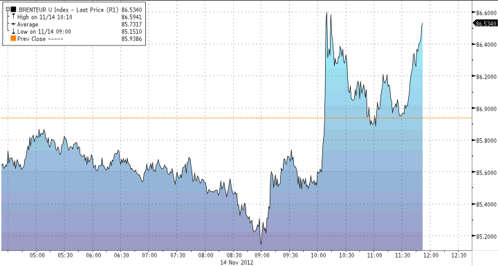 Il primo mostra come per una volta la stupidità degli algoritmi sia stata resa palese dall’analisi reale della situazione da parte dei grandi player, ovvero la dimostrazione che il timore di un nuovo conflitto mediorientale fa bene ai futures del Brent, ma male all’azionario. Il secondo, appunto, mostra il picco del Brent dopo la notizia dell’omicidio mirato portato a termine dai servizi israeliani, stabilmente sopra quota 110 dollari al barile. Ora, al netto del fatto che Benjamin Netanyahu ha bisogno di mostrare i muscoli a Gaza per ottenere una vittoria tale da garantirgli il via libera all’opzione contro l’Iran (l’accordo siglato con Avigdor Lieberman per la fusione fra Likud e Israel Beitenu gli consente di poter già guardare oltre le elezioni del 22 gennaio), urge ricordare tre cose.