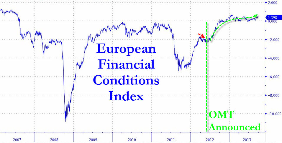 Guardate il primo grafico a fondo pagina, ci dimostra chiaramente come il sentiment finanziario dell’eurozona sia stato garantito finora unicamente dall’annuncio di Draghi del bazooka anti-spread, il famoso programma Omt che nei fatti e nello statuto nemmeno esiste. Bene, al di là del fatto che prima o poi i mercati andranno a vedere il bluff dell’Eurotower come in una partita di poker, entro la fine di quest’anno la Corte costituzionale tedesca di Karlsruhe potrebbe sancire la non liceità di quel programma, strozzandolo di fatto nella culla insieme alla calma regnata finora sui mercati obbligazionari sovrani. Se la Merkel opterà per l’opzione forte, ovvero dire no alla Spd e puntare a nuove elezioni, avrà bisogno – fin da ora – di una campagna mediatica anti-periferici enorme e capillare, capace di spaventare a morte i tedeschi rispetto ai rischi che corrono a causa degli spendaccioni corrotti e indebiti del Sud Europa, Italia in testa. A me pare che questa strategia sia già partita e veda operativi H24 anche i due più famosi corrispondenti di media tedeschi nel nostro Paese, Tobias Piller e Udo Gumpel, stranamente sempre più presenti nei vari talk show e sempre meno rilassati e lucidi nelle disamine e nei toni.