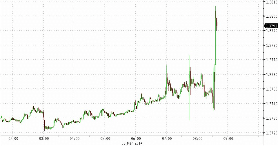 Anche riguardo all’ipotesi di sospensione della sterilizzazione degli acquisti di titoli di Stato, Draghi ha detto che «non è necessaria ora, ma è nella lista delle possibilità di intervento nel prossimo futuro». Detto fatto, i mercati delusi dalla replica delle conferenze stampa degli ultimi otto mesi hanno reagito rimandando l’euro/dollaro ben sopra quota 1,38, come ci dimostra plasticamente questo grafico, una vera manna per la ripresa nell’eurozona, soprattutto per l’export dei paesi periferici.