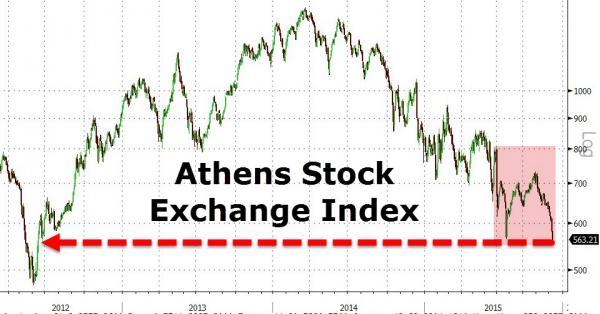 Con ovvie reazioni immediate dei mercati, i quali potrebbero ricominciare a prezzare l’ipotesi del Grexit, portando gli spread sovrani ellenici a livelli d’allarme e inviando scossoni potenzialmente letali al sistema bancario, stracarico di obbligazioni sovrane e sofferenze, nonostante la ricapitalizzazione da 15 miliardi. E attenzione, perché il fronte greco rischia davvero di tornare incandescente fin dalle prime settimane del prossimo anno, visto che mercoledì scorso la Borsa di Atene si è letteralmente schiantata, arrivando ai minimi del giugno 2009, come ci mostra il grafico a fondo pagina.