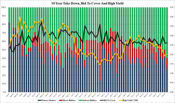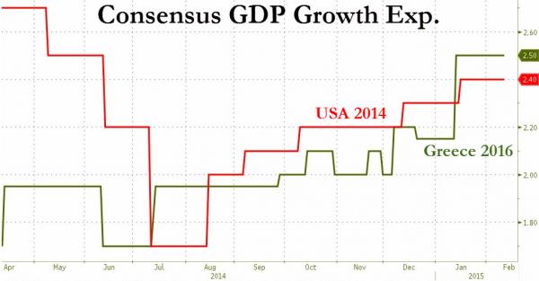 Avete voglia di farvi due risate, in questi giorni di brutte notizie e rischi sempre più incombenti sul piano internazionale? Bene, guardate il primo grafico, il quale ci dimostra meglio di mille parole in quale specie di mondo stiamo vivendo. A fronte di una situazione greca da incubo, con le autorità di Atene messe con le spalle al muro sia dall’Ue che dalle fredde cifre del bilancio statale, ecco che ancora oggi le aspettative di crescita ellenica da qui al 2016 restano addirittura migliori di quelle statunitensi del 2014, l’anno della presunta “svolta” e della ripresa a stelle e strisce. Parafrasando un noto spot, che mondo sarebbe senza Mario Draghi? Ma, in effetti, da ridere c’è proprio poco e ce lo dimostra il secondo grafico, relativo alla partecipazione e al rendimento dell’asta tenutasi martedì di un bond statunitense a 3 anni: bene, come ci dimostra l’area verde del grafico, la domanda da parte di investitori esteri, i cosiddetti “Indirect”, è stata la più alta da 5 anni a questa parte, raggiungendo il 59,5% del totale, un livello che non si conosceva dal dicembre 2011.