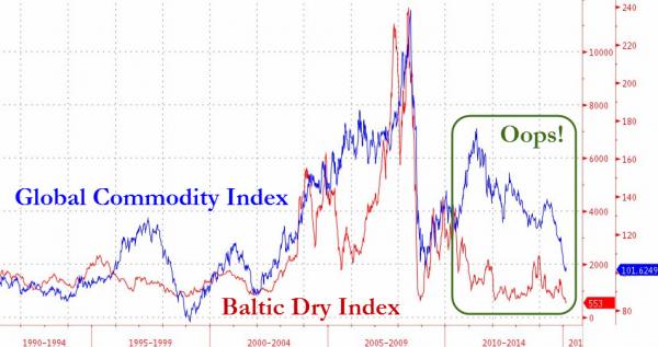 Ne volete la prova, eccola quindi, spiegata splendidamente dal primo grafico a fondo pagina: come vi ho raccontato quando abbiamo parlato della teoria del ciclo economico della Scuola austriaca, ecco a voi il più grosso mal-investment basato sul credito della storia, visto che il Baltic Dry Index è un indice non finanziarizzato di costi per transazioni reali nel mondo reale, mentre l’altro è un indice di asset pesantemente finanziarizzati: che dite, il boom artificiale è diventato un bust? Non vi pare questa sia la prova provata, oltre che della bontà delle tesi della Scuola austriaca, anche del fatto che gli unici beneficiari dei cicli di stimolo monetario siano le banche commerciali e d’affari e i mercati azionari?