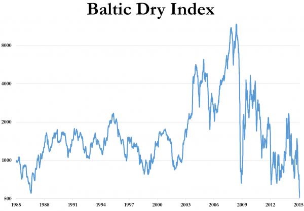Guardate il primo grafico a fondo pagina, ormai dovrebbe esservi diventato familiare: il Baltic Dry Index continua a rompere record in negativo e a schiantarsi, ieri a quota 509, giù del 65% dai massimi del novembre 2014, solo tre mesi fa. E questo ha comportato un crollo degli ordini per navi da carico in gennaio, rimandando echi sinistri di quanto accadde durante l’ultimo tonfo del Baltic Dry Index nel 2012, quando gli ordinativi navali da trasporto crollarono del 49%, mettendo a dura prova un Paese come la Cina, dove sono attivi oltre 1500 cantieri navali e si arrivò a una calo dei prezzi ai minimi da otto anni. E visto che stando a dati dell’Intermodel Research and Valuation, gruppo greco che pubblica un report mensile sulle spedizioni navali a livello globale, nel mese di gennaio ci sono stati solo 20 nuovi ordini per navi destinate al carico “bulk”, ovvero di materiale secco, possiamo purtroppo dire che siamo solo all’inizio.
