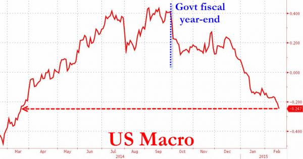 Direte voi, con che coraggio allora la Cina va allo scontro con gli Usa, dovendo fare i conti con una potenziale crisi economico-finanziaria in arrivo? Con il coraggio di chi sa di star male, ma sa altrettanto bene che c’è chi sta peggio, gli Usa appunto. Guardate il secondo grafico: l’indicatore Macro Data di Bloomberg che traccia il miglioramento/peggioramento dei dati economici anche rispetto alle stime attese è al minimo da undici mesi, soltanto nel mese di febbraio si sono registrati 29 dati macro riguardanti gli Stati Uniti peggiori delle attese, contro solo 4 migliori delle previsioni. E se tra questi ultimi c’è il dato dei salari non agricoli, quello che sconta continue revisioni per adattarsi ai bisogno del momento, tra gli altri ci sono ad esempio le vendite al dettaglio, la produzione industriale, le spese personali, le spese per costruzioni, le spese per veicoli, il bilancio commerciale, il tasso di disoccupazione, l’indice delle condizioni di mercato, la produzione manifatturiera e le richieste per l’accensione di nuovi mutui. Ecco a voi la ripresa statunitense.