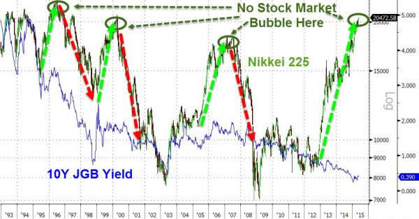 Il mondo è definitivamente impazzito. Sapete cos’ha avuto il coraggio di dire ieri il governatore della Bank of Japan, il valoroso samurai Kuroda? «Non vedo nessuna bolla sugli asset o bolla sul mercato azionario. Di più, non vedo nessun eccesso finanziario nell’economia». Ora guardate il grafico a fondo pagina e ditemi se il buon Kuroda non ha bisogno urgente di un ottimo oculista: a vostro modo di vedere, cosa succederà al capitale del Bank of Japan se il suo portafoglio equity dovesse soffrire una correzione del 2%, del 5% o magari del 10%? Questi sono dei folli, non c’è altra spiegazione.