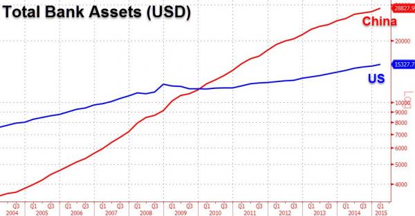 L’azienda, basata nella città del sud di Zhuhai e che occupa oltre 4mila persone, il 21 maggio scorso aveva reso noto agli investitori che un consorzio di banche aveva respinto la sua richiesta di un prestito da 500 milioni di yuan, di fatto ufficializzando una drammatica crisi di liquidità. Direte voi, succede. Certo, peccato per tre piccole criticità. Primo, non si tratta di un’azienda da due lire, ma della fornitrice di giganti come Coca Cola e Pepsi che rischia il default su un bond che va a scadenza. Secondo, prima che venisse sospeso il mese scorso, il titolo dell’azienda sul listino di Shenzhen aveva macinato il +120% da inizio anno, viaggiando a un multiplo di utile per azione di 71x. Terzo, il grafico a fondo pagina ci spinge a una considerazione: come può esserci crisi di liquidità in un mercato simile? Le banche cinesi, infatti, hanno assets per circa 30 trilioni di dollari, quasi il doppio degli istituti statunitensi e la Banca centrale cinese e dal 2008 la liquidità degli istituti è cresciuta di 15,4 triliardi di dollari, contro i 9,8 triliardi di Fed, Bank of Japan, Bank of England e Bce messe insieme. Eppure c’è crisi di liquidità.