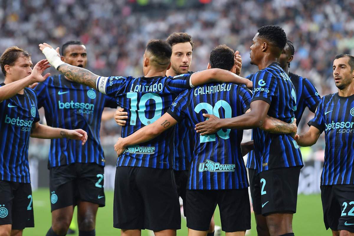 L'Inter festeggia un gol di Hakan Calhanoglu (Foto ANSA)