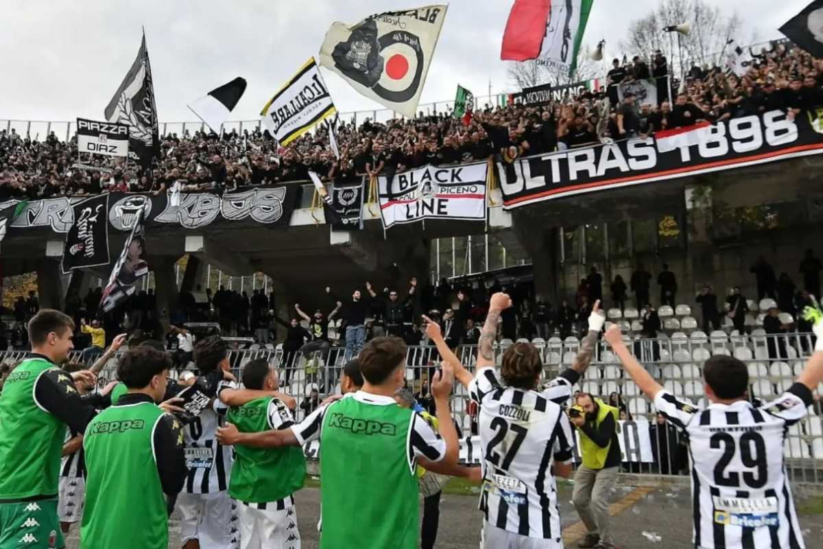 I giocatori dell'Ascoli esultano col loro pubblico (Facebook Lega Pro)