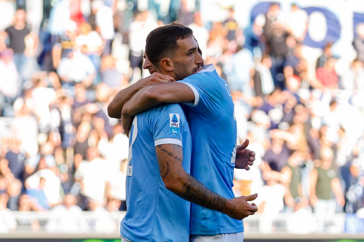 L’abbraccio tra Matteo Cancellieri e Danilo Cataldi con la Lazio (Foto ANSA)