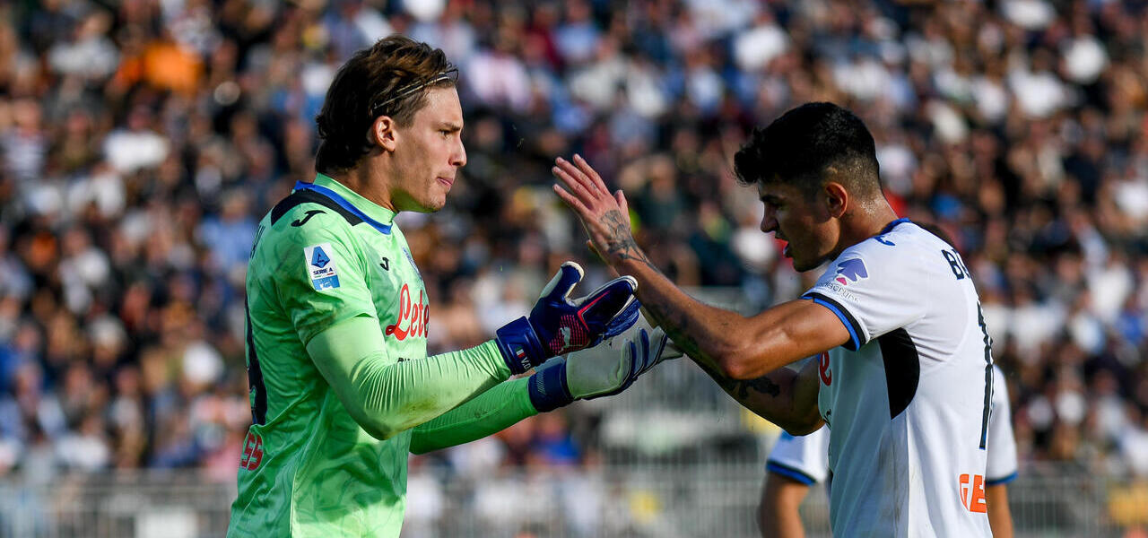 Marco Carnesecchi e Raoul Bellanova con l'Atalanta (Foto ANSA)