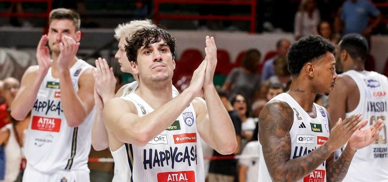 La partita inizia con Morris che segna dopo un rimbalzo offensivo, seguito da un canestro di Johnson, portando il punteggio a 4-0 in favore della Happy Casa. Ford e Toté riescono a segnare i primi punti per la VL, ma Laquintana mantiene la Happy Casa in vantaggio, portando il punteggio a 6-4. Tuttavia, Pesaro si porta in vantaggio con un canestro di Bamforth, portando il punteggio a 6-7. Successivamente, la Carpegna Prosciutto inizia un parziale positivo, con Bluiett e Bamforth che segnano entrambi da tre punti. Il timeout viene chiamato da Corbani con il punteggio di 6-15 dopo 5 minuti e 50 secondi di gioco. Morris commette un doppio errore dalla lunetta. Bluiett segna il canestro per il 6-19. Visconti segna un canestro con fallo, portando il punteggio a 6-22. La Happy Casa cerca di sbloccarsi con una tripla di Kyzlink, ma Tambone risponde subito portando il punteggio a 9-22. Morris segna quattro punti consecutivi e Brindisi cerca di reagire. Alla fine del quarto, il punteggio è di 15-24. (agg. di Fabio Belli)