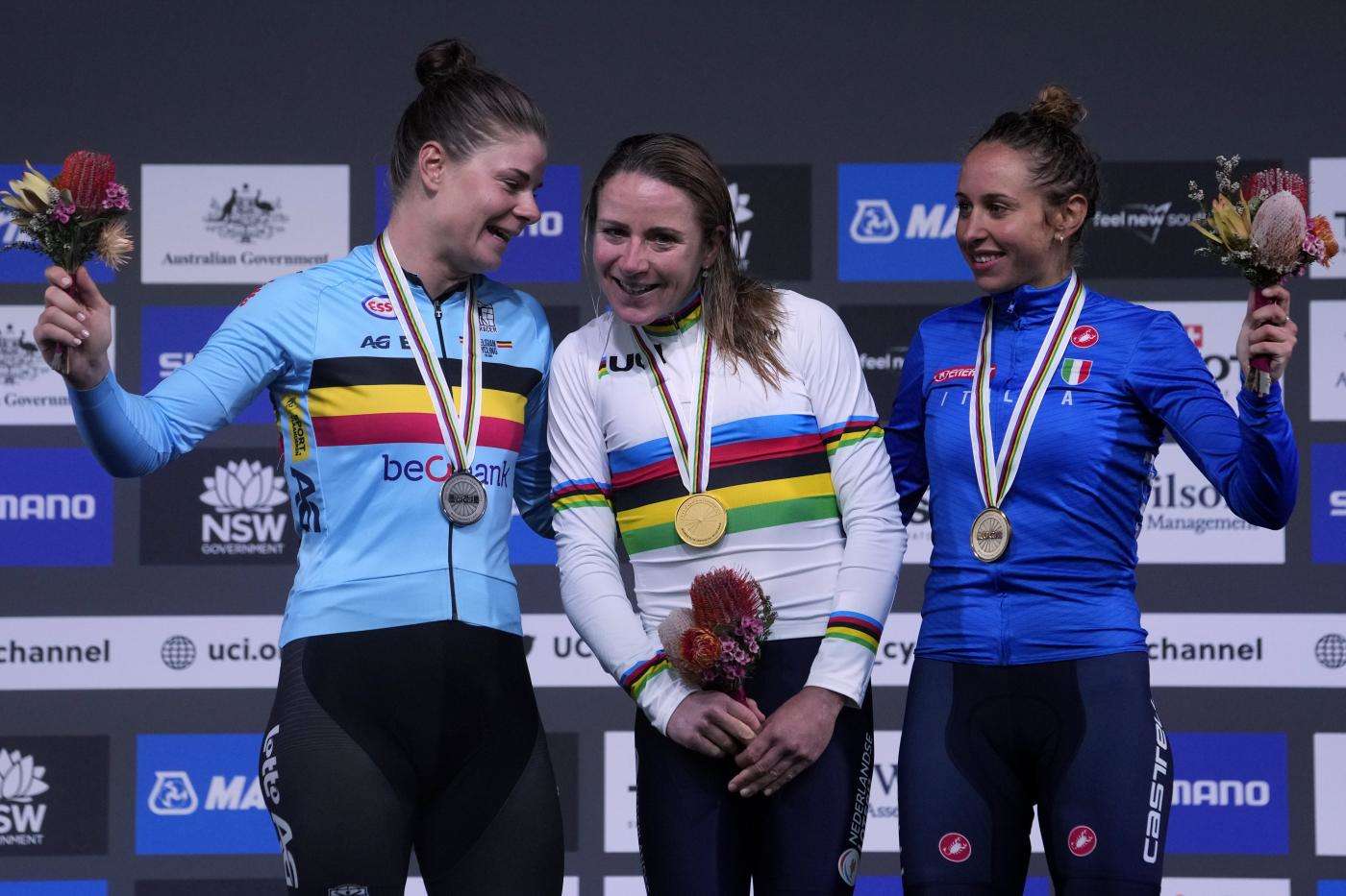 Diretta gara in linea donne Mondiali ciclismo 2023: il podio del 2022 (LaPresse)
