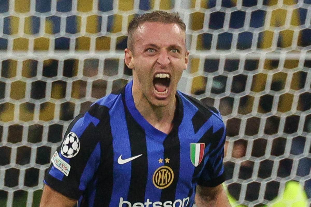 Davide Frattesi esulta con l'Inter contro il Barcellona (Foto Ansa)