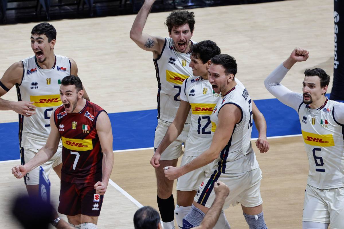 L'esultanza dell'Italia di volley (Foto ANSA)