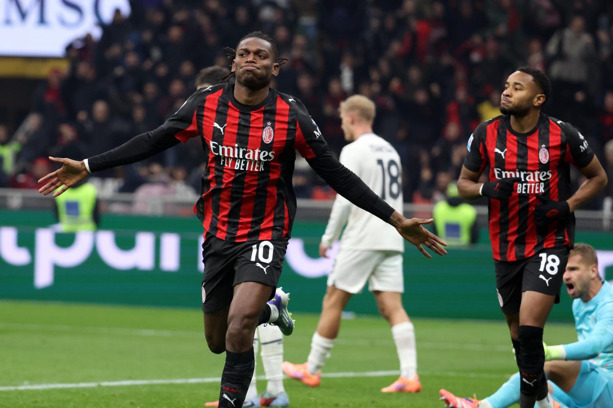 L’esultanza di Rafael Leao in Milan Lazio (Foto ANSA)