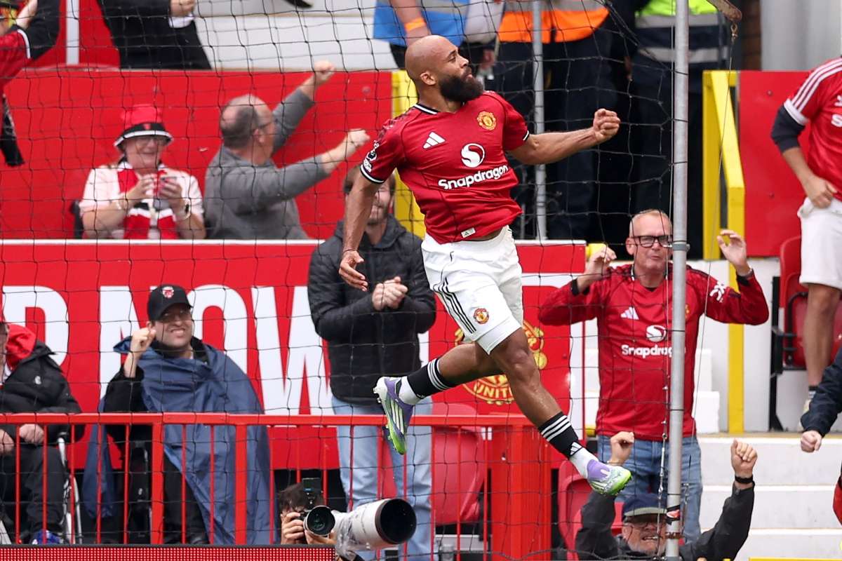 Bryan Mbeumo esulta con il Manchester United (Foto ANSA)