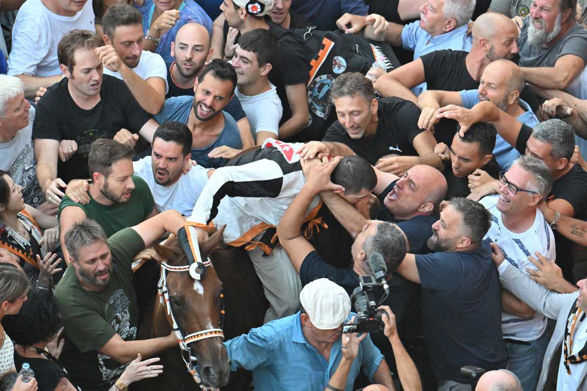 La Lupa in festa per la vittoria al Palio di Siena (Foto ANSA)
