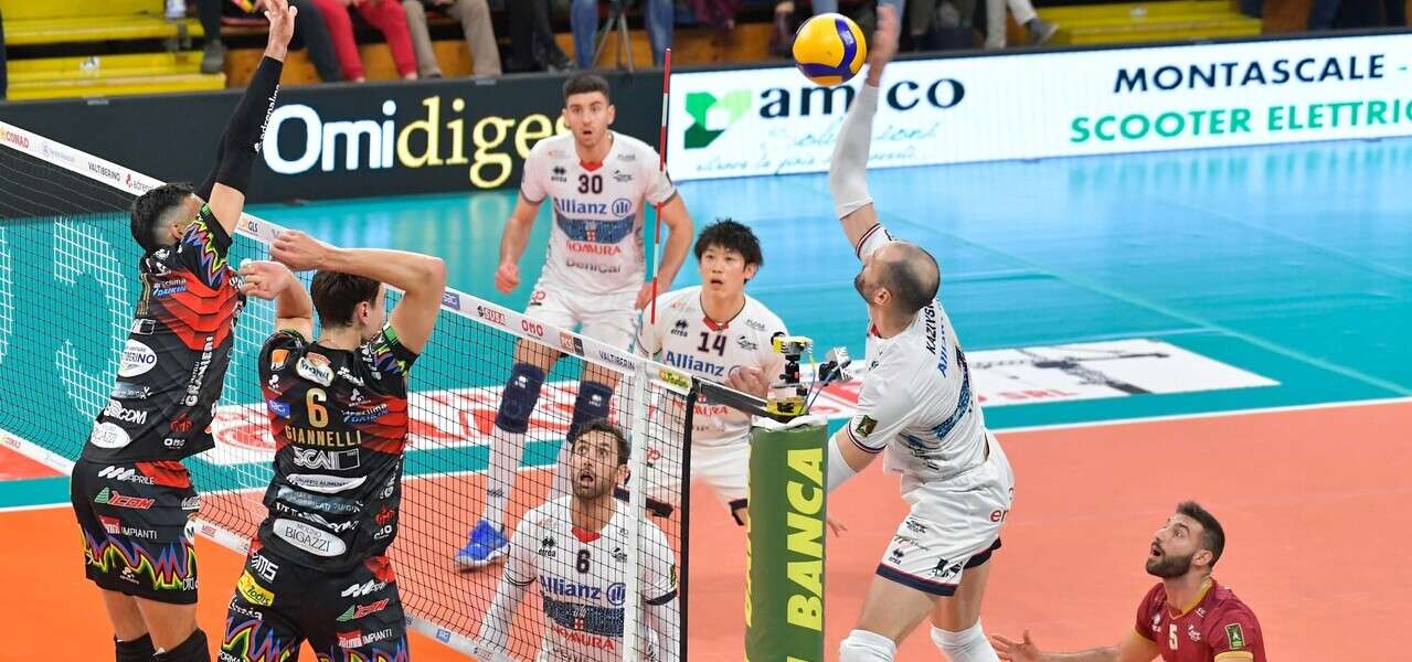 Perugia Milano si gioca in diretta dal Pala Barton, alle ore 18:00 di domenica 7 aprile: siamo arrivati a gara-3 della semifinale playoff di volley SuperLega 2023-2024. Serie in parità: è 1-1 e dunque dopo questa partita ci sarà sicuramente il ritorno all’Allianz Cloud, dove una delle due squadre avrà sulla racchetta il match point per volare in finale. Certamente una grande occasione l’ha sprecata Perugia, che dopo aver vinto il primo episodio in casa è stata per due volte in vantaggio nel corso di gara-2 e poi ha perso un tiratissimo tie break per 20-18, altro epilogo con il brivido dopo la semifinale di Coppa Italia.