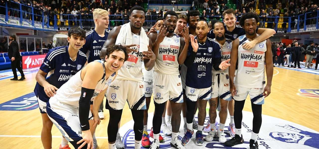 Presso l’impianto Vitrifrigo Arena l’Happy Casa Brindisi batte in trasferta la Carpegna Prosciutto Pesaro per 100 a 70. Nel primo tempo le due squadre sembrano bilanciarsi l’un l’altra ma con il passare dei minuti sono gli ospiti a prendre in mano il controllo delle operazioni prendendo il largo prima di rientrare negli spogliatoi per l’intervallo lungo. Nel secondo tempo il copione pare ripetersi sebbene siano i pugliesi a spuntarla ancora tenendo a bada i marchigiani che faticano a tornare in corsa.