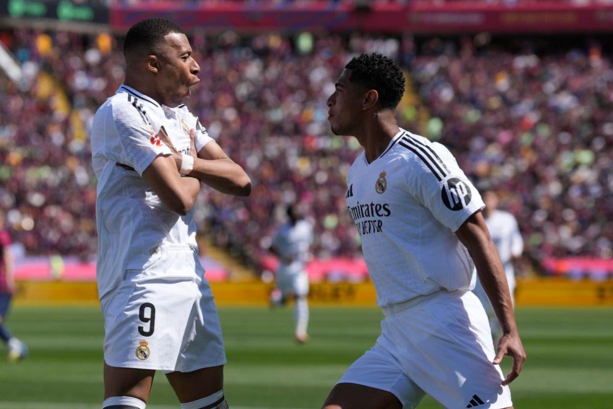 Kylian Mbappé e Jude Bellingham esultano con il Real Madrid (Foto ANSA)