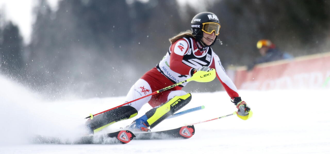 Katharina Liensberger nel corso dello slalom Kranjska Gora (Foto ANSA)