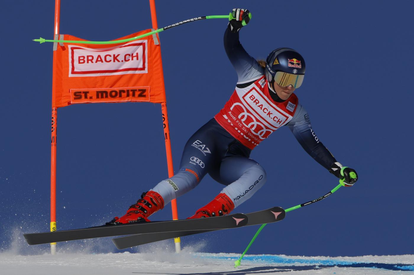 Sofia Goggia in azione a Sankt Moritz nelle prove di discesa (LaPresse, 2023)